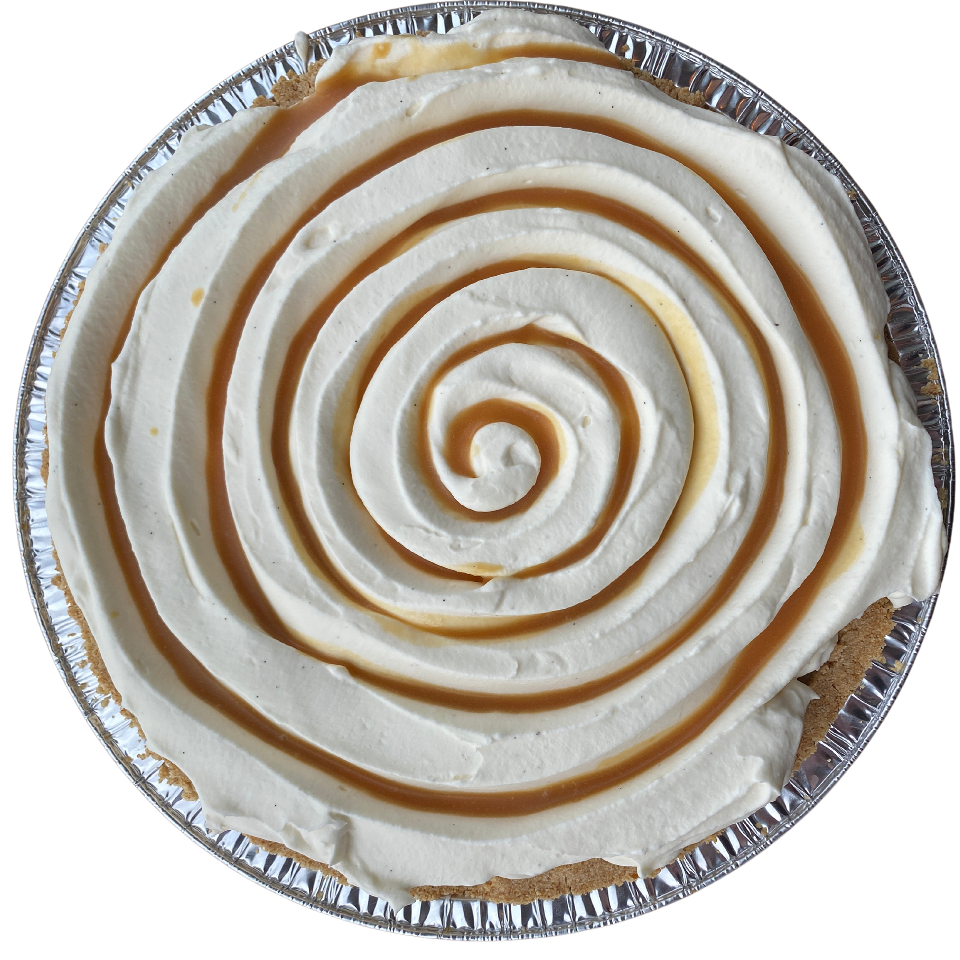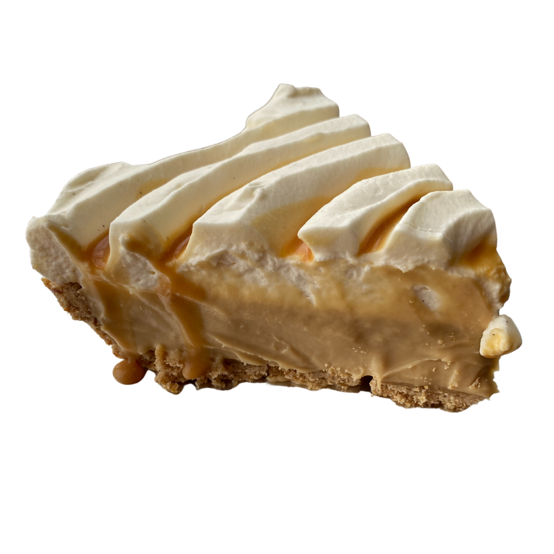 A smooth butterscotch custard in a salty pretzel crust. Topped with additional caramel sauce and whipped cream, this pie is the perfect blend of sweet and salty.