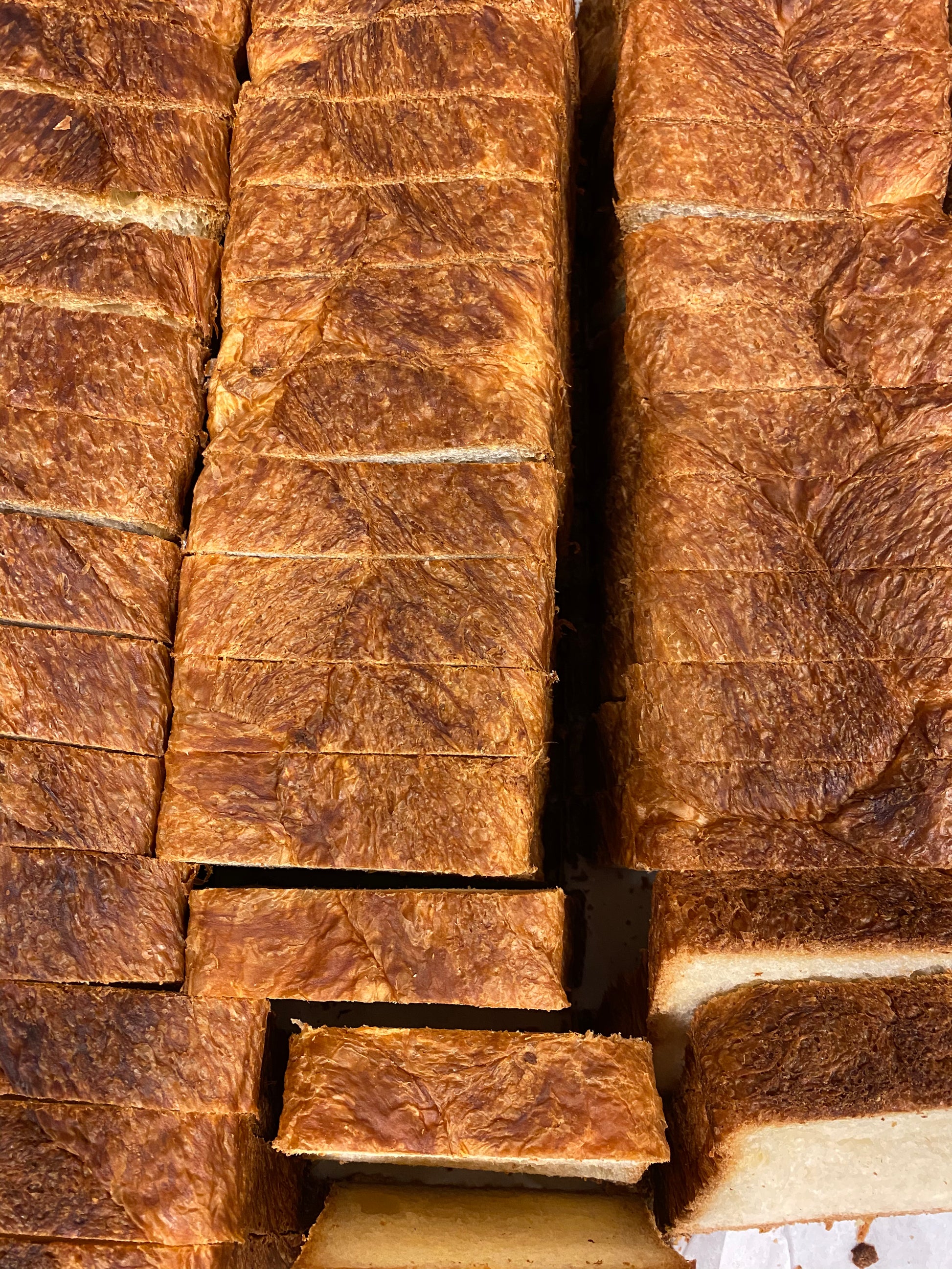 Take your breakfast sandwich to a whole new level or make the Croque Madame of your dreams. It also makes amazing French toast. Our croissant bread is perfect for all that and more. Now available through our online store and for preorder for Mill City Farmers Market, choose sliced or unsliced and we'll wrap it up and have it ready for your next fancy brunch or decadent dessert.
